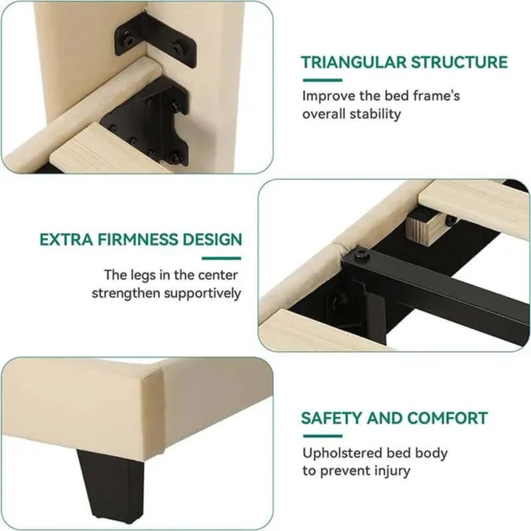 This classic platform king bed frame with rectangular velvet headboard. The inside of the headboard is foam padded, soft, and comfortable. Middle bed legs are upgraded, and anti-scratch foot pads keep the floor or mats free from harm. Features a thick & sturdy metal frame constructed from premium iron to provide the bed frame with a longer lifespan.